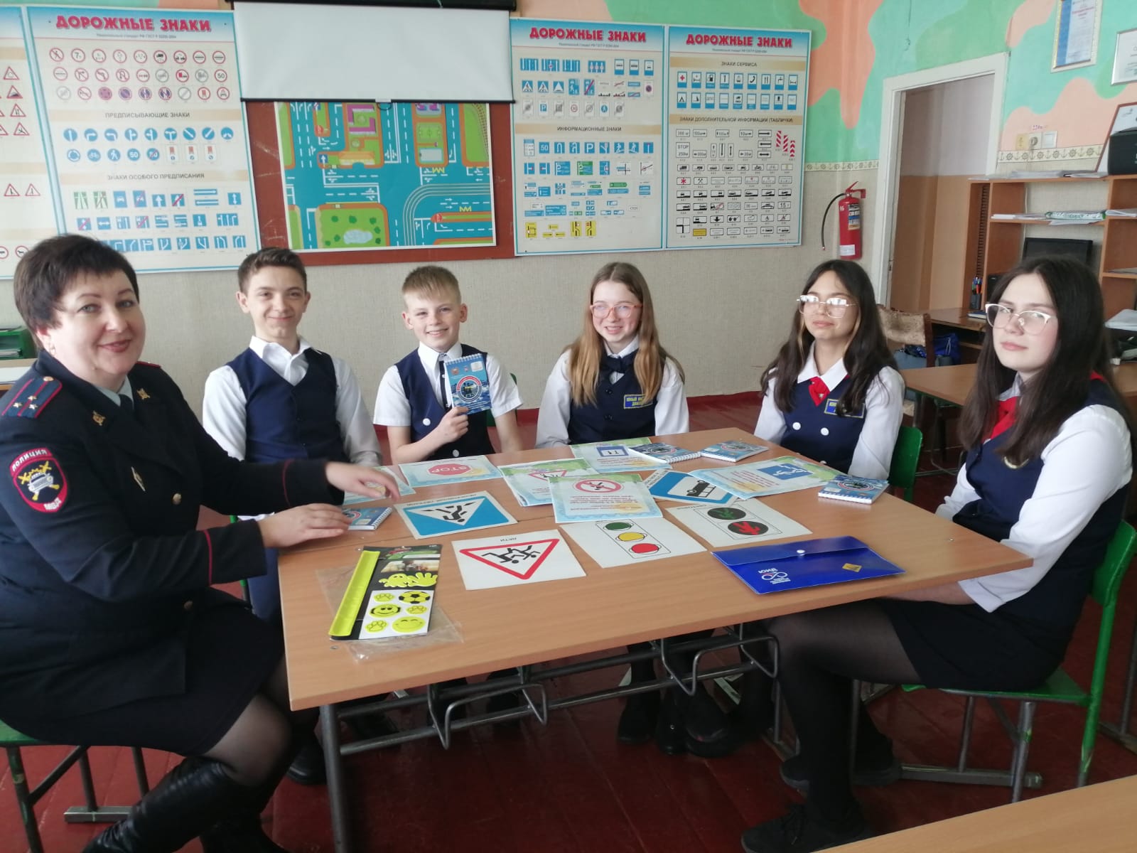 ЮИДовцы со своим руководителем Сергеем Винтером в свою очередь организовали занятие для ребят младших классов, на котором продемонстрировали визитную карточку отряда, рассказали о проводимых мероприятиях и главной задаче юных инспекторов – соблюдении ПДД. Ребята и педагоги поблагодарили юных помощников ГИБДД за интересное мероприятие, поздравили с праздником и пожелали дальнейших успехов в развитии движения ЮИД.