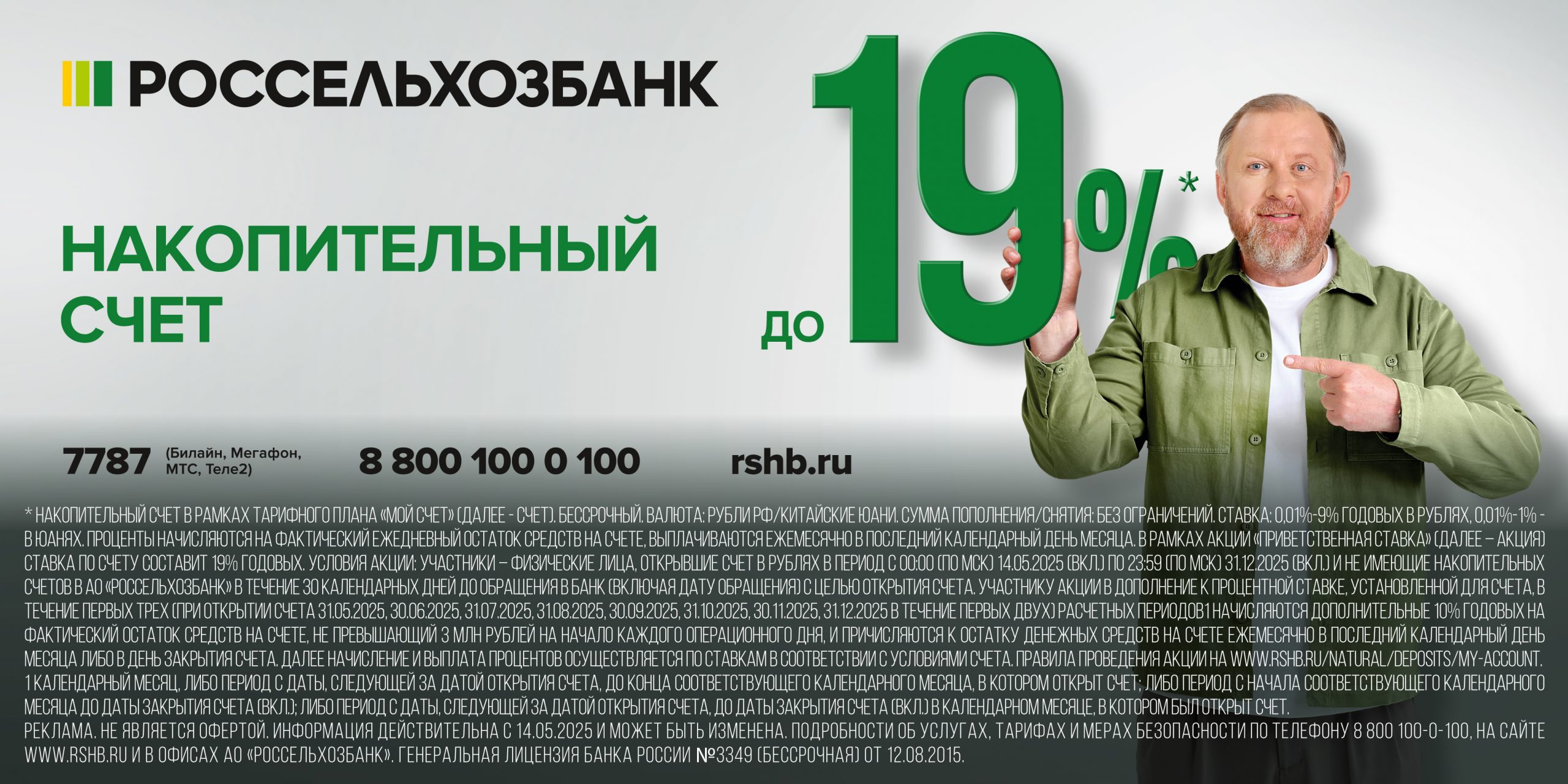АО «Россельхозбанк». Генеральная лицензия Банка России №3349 (бессрочная). Реклама. Erid: 2SDnjdNJgTo