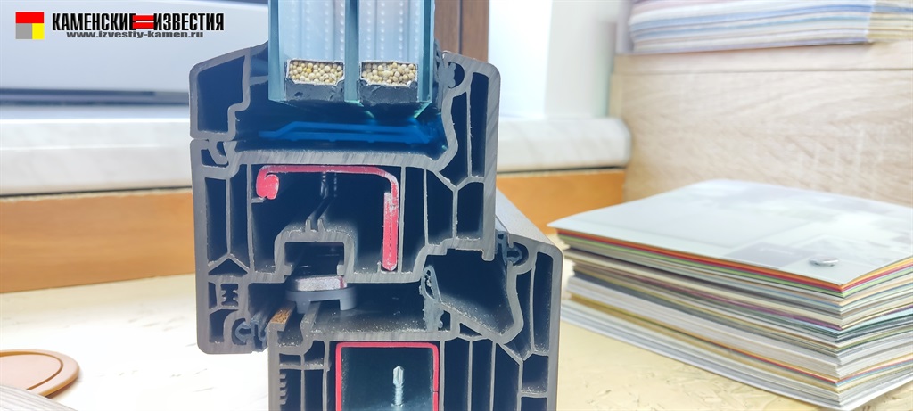 Павел наглядно продемонстрировал двери с терморазрывом, который поможет в лютые сибирские морозы защититься от холода, инея и обледенения. Такие двери состоят из двух полотен, между полотнами – терморазрыв. То же самое с дверной коробкой. Благодаря этому, даже если на улице жуткий минус, холод в дом не проникнет.