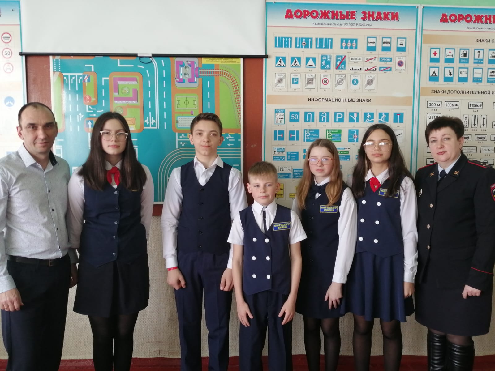 ЮИДовцы со своим руководителем Сергеем Винтером в свою очередь организовали занятие для ребят младших классов, на котором продемонстрировали визитную карточку отряда, рассказали о проводимых мероприятиях и главной задаче юных инспекторов – соблюдении ПДД. Ребята и педагоги поблагодарили юных помощников ГИБДД за интересное мероприятие, поздравили с праздником и пожелали дальнейших успехов в развитии движения ЮИД.