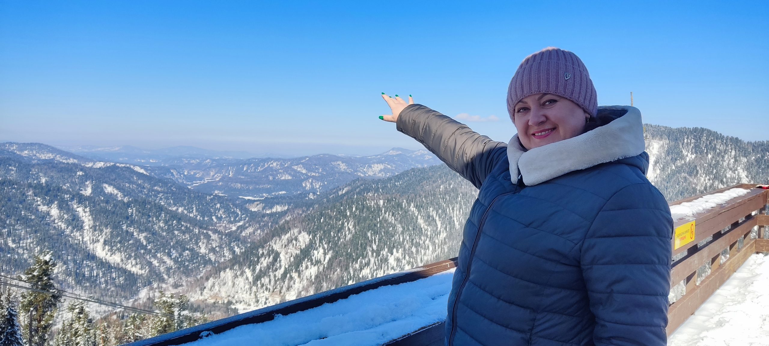 Пешие туристы тоже могут подняться по канатке — нужно заплатить только за разовый рейс, а там гуляй сколько влезет. На вершине очень красиво, открывается вид на горную долину, в которой наводит мрачную красоту прителецкая тайга. Трудно оторвать взор от ломаной кривой горизонта, так же трудно остановить мысль, бесцельно блуждающую в поисках подходящих слов…