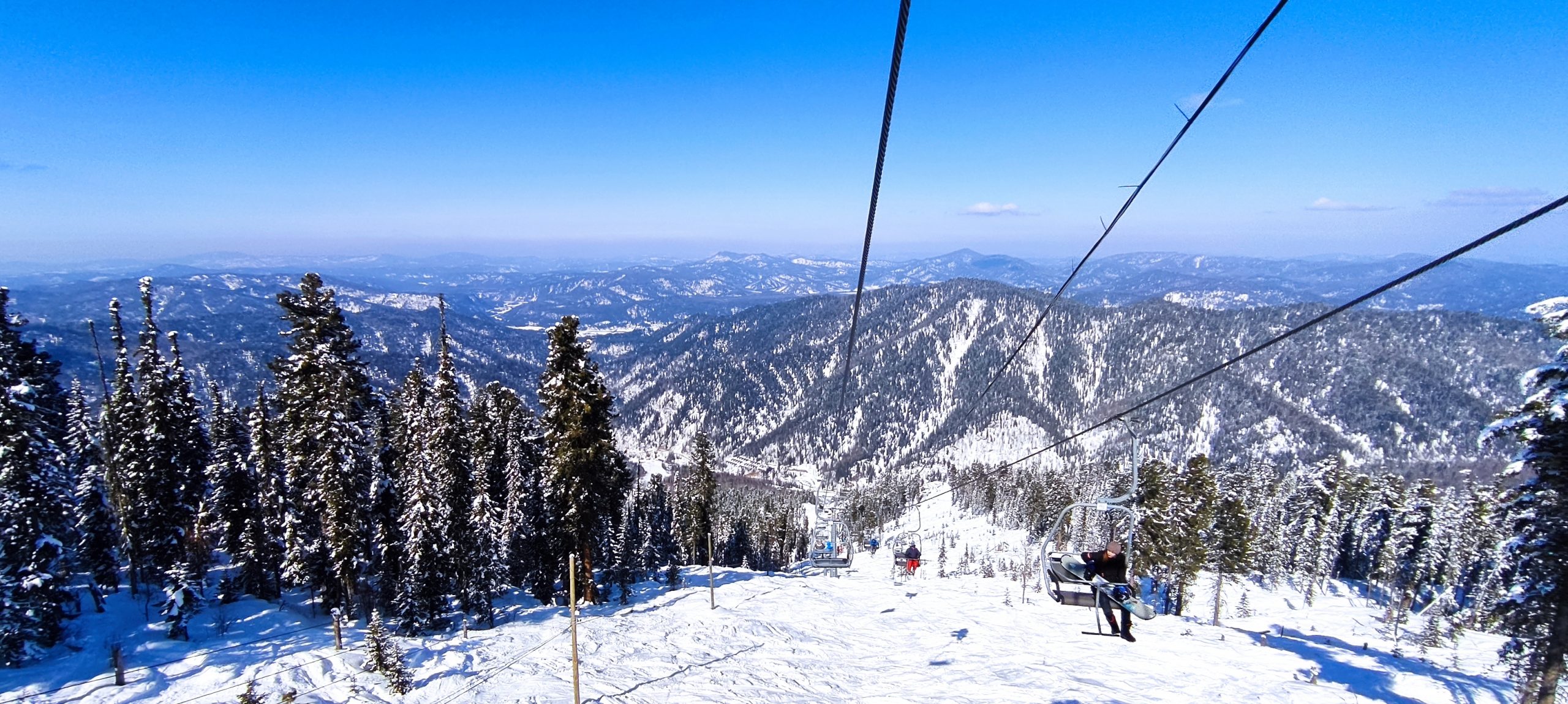 Всего в пяти километрах от Артыбаша чешет макушку о купол неба гора Кокуя. Очень долго она это делала в полном одиночестве, пока её склоны не облюбовали горнолыжники. Инвесторы вложили деньги, и здесь появилась канатная дорога на самую вершину, а это около полутора тысяч вёрст.