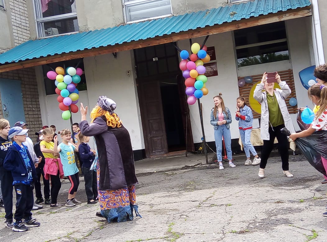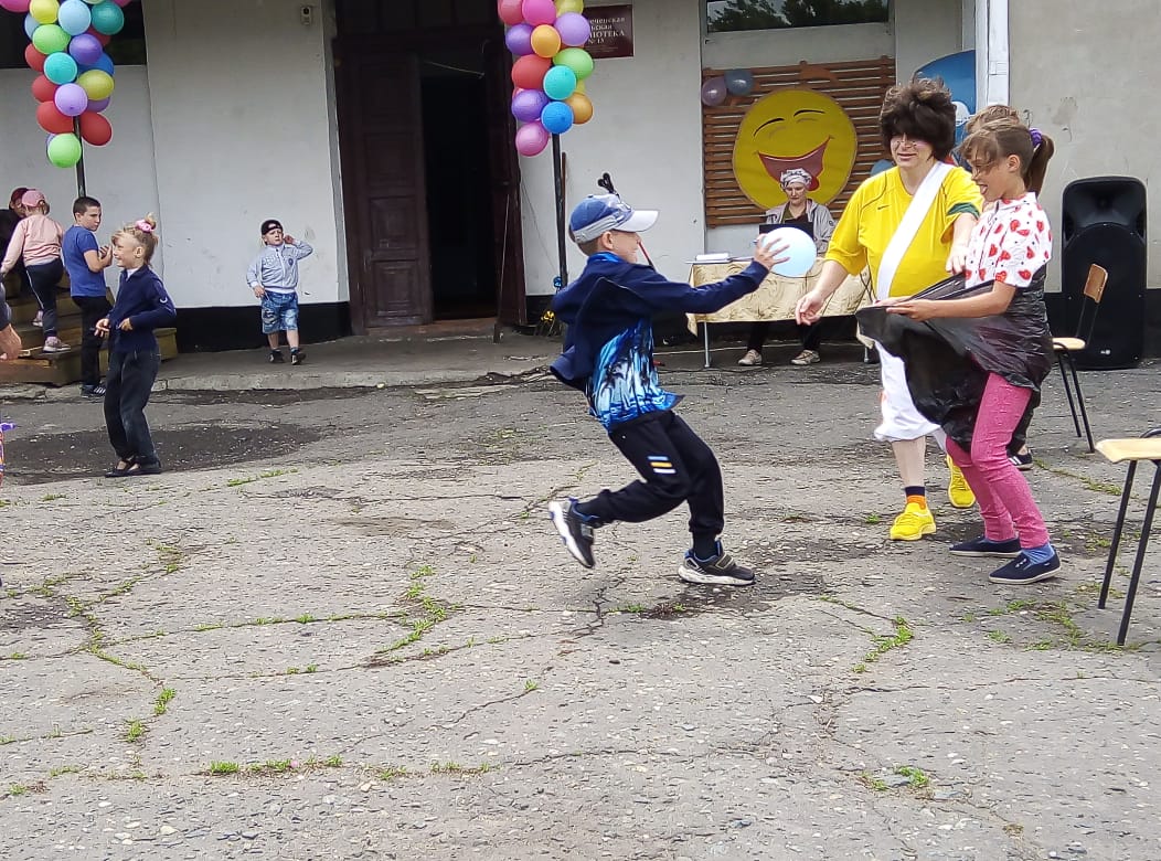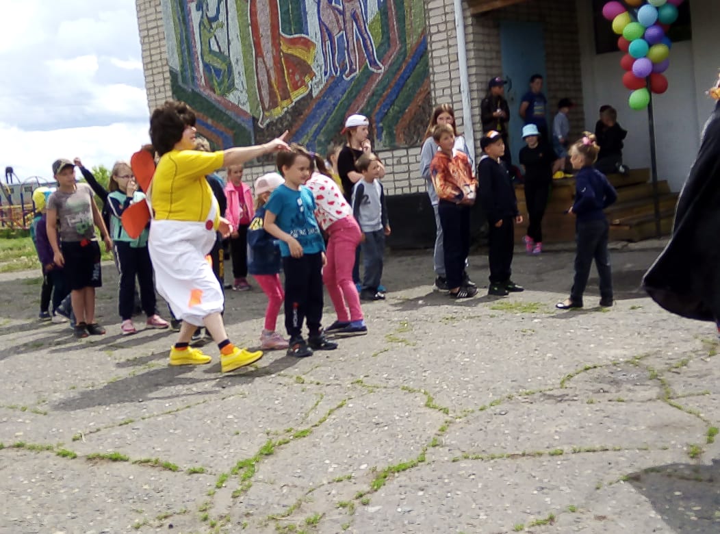 Мероприятие начали ведущие — это Лидия Трабаева и Анастасия Кулигина. Затем на праздник прилетел Карлсон (Ирина Дворских), сначала он искал свою любимую баночку варенья, а затем предложил ребятам поиграть с ним. Ребята, конечно же, с удовольствием согласились. Карлсон принес с собой большую конфету и предложил детям передавать ее из рук в руки пока звучит музыка, а как музыка закончится, у кого останется конфета, выходит с Карлсоном в круг и начинают танцевать. Затем был весёлый конкурс «Водомёты», задача этого конкурса состояла в том, что детям нужно было водой сбить кегли. Продолжил наше веселье конкурс «Кот в сапогах», где ребята должны были, надев сапоги большого размера и шляпу добежать до определенного места, сделать поклон, сняв шляпу, вернуться обратно и передать весь реквизит следующему игроку.