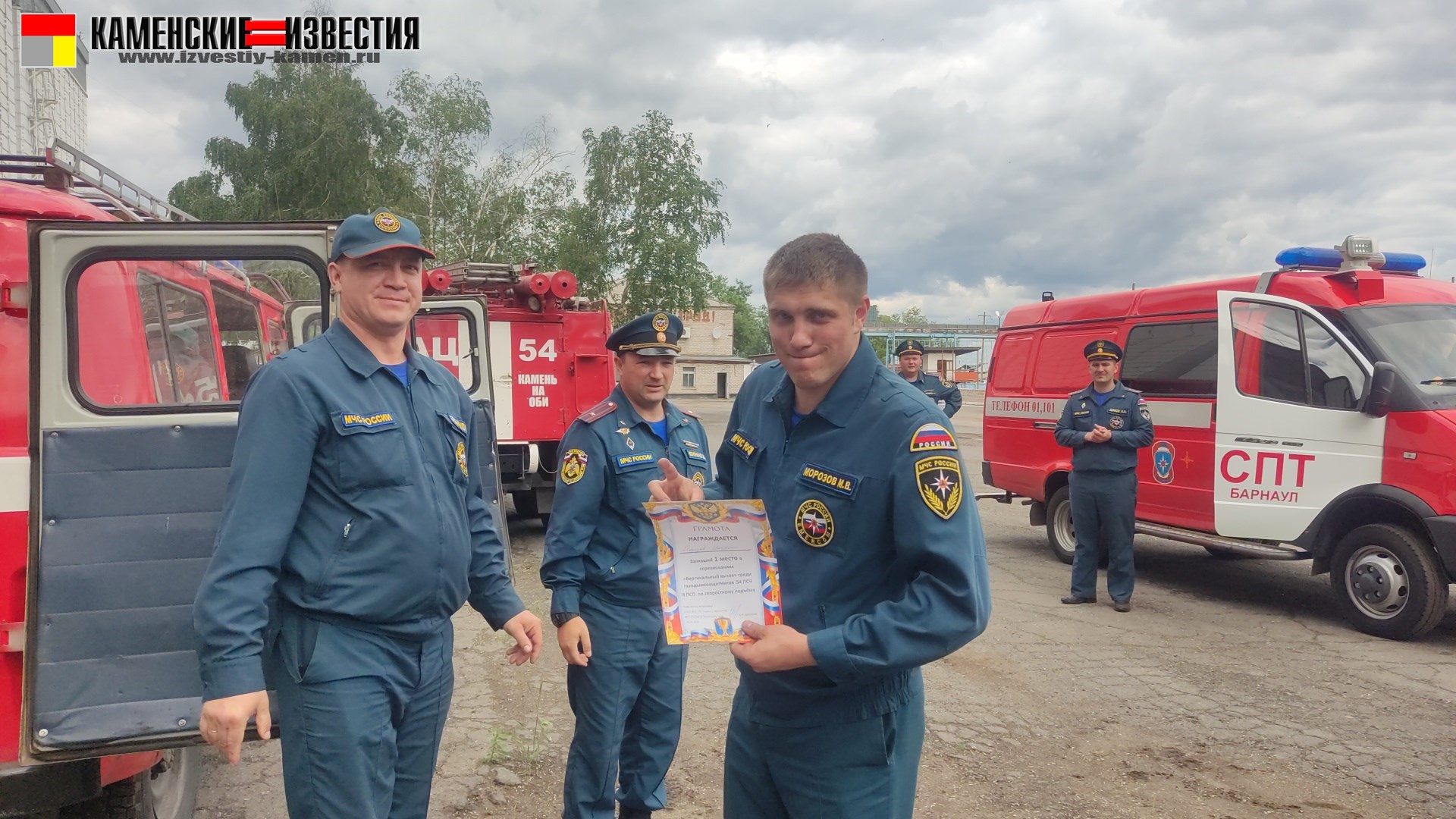— Сегодня в Камне-на-Оби прошли внеплановые тренировочные учения, — рассказал Евгений Кононенко, начальник дежурной смены службы пожаротушения ГУ МЧС России по Алтайскому краю, майор внутренней службы. — Они представляют собой скоростной подъем среди звеньев ГДЗС (газодымозащитная служба) 8-го пожарно-спасательного отряда. Главное управление в течение года в каждом из отрядов проводит подобные внеплановые тренировки для того, чтобы проверять боеготовность подразделения. Тренировка прошла без происшествий, все газозащитники показали достойный уровень подготовки.