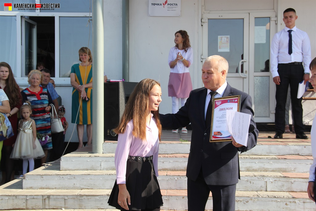 Торжественное мероприятие посетила Оксана Иванова, начальник управления образования Каменского района. Она отметила, что в 2022 году школа получила новое оборудование для «Точки роста». Благодаря этому, ученики смогут углубленно заняться физикой, химией, биологией.
