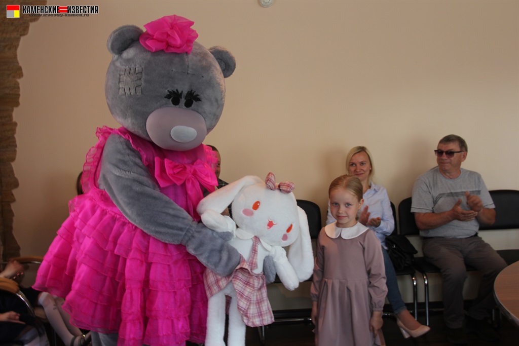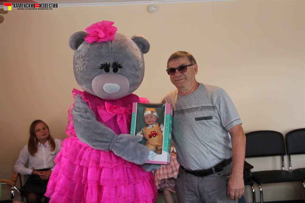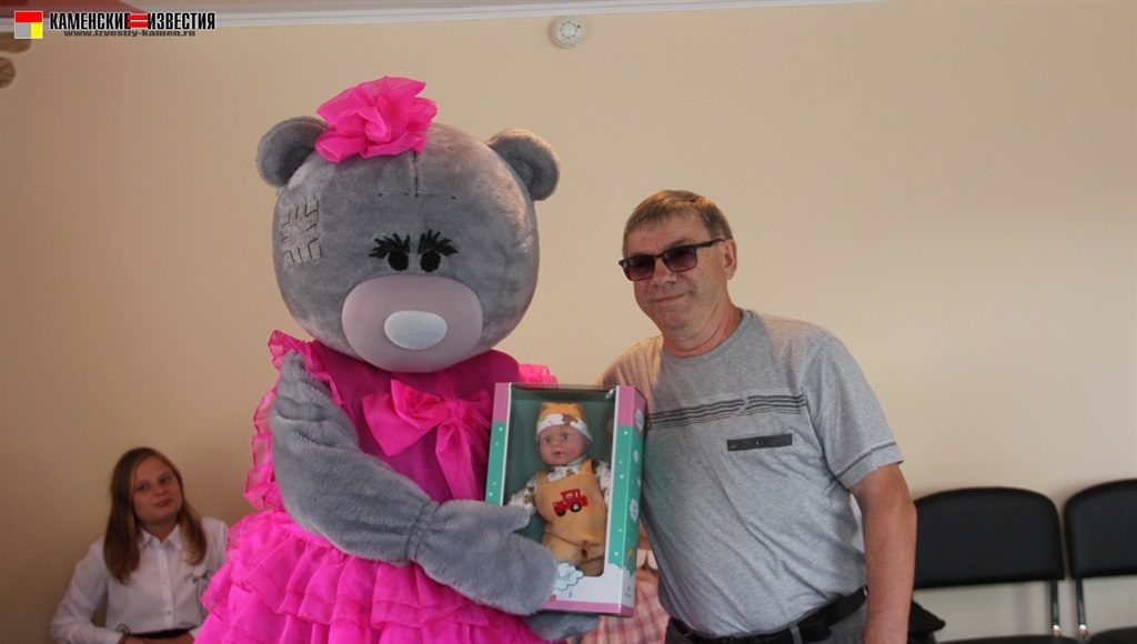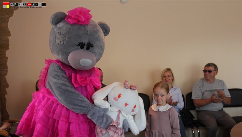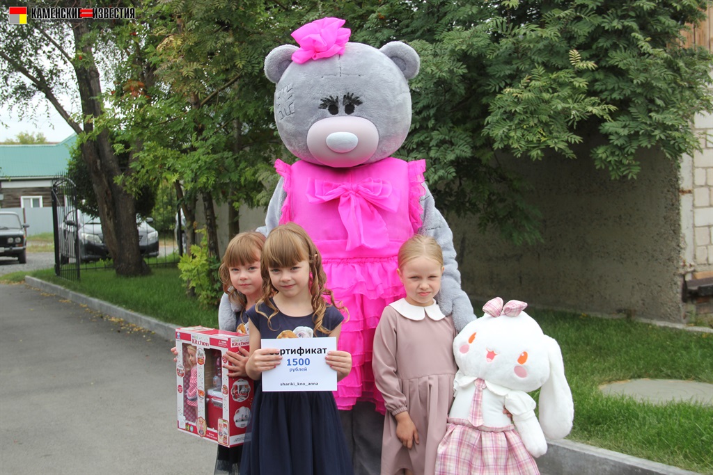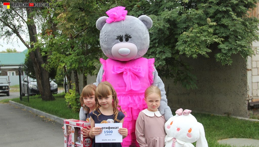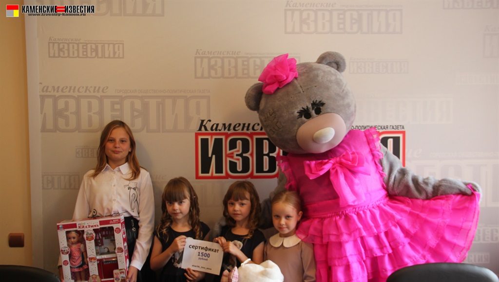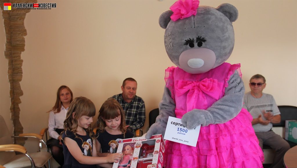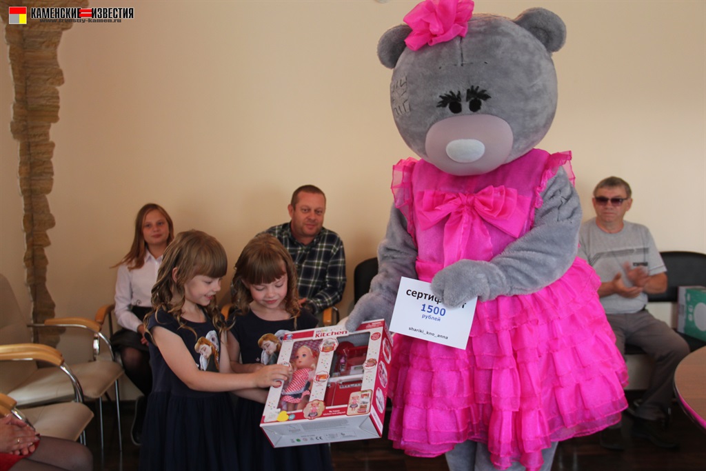 Несомненно, в этот день гвоздем поздравительной программы стал большой и очень добрый гость – Мишка. Под веселую музыку, танцуя, он вышел к гостям, и трудно было определить, кто был больше рад плюшевому празднику – дети или их родители. Мишка вручил подарки победителям от спонсора конкурса магазина ЦУМ – огромная мягкая игрушка, большой пупс и прелестная куколка с игрушечной кухней. От себя же сказочный герой подарил сертификат и теперь сестренки Рахмановы смогут снова позвать его к себе в гости.