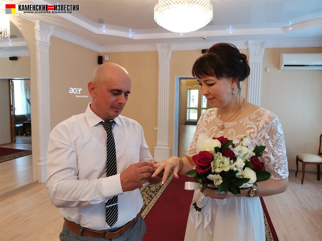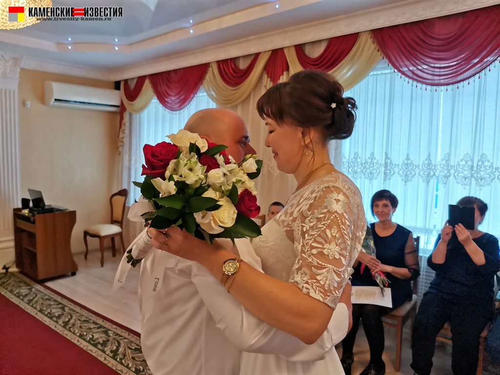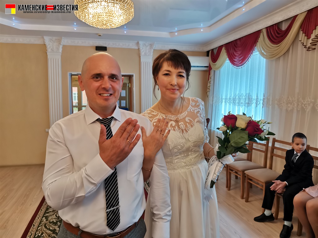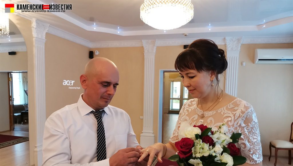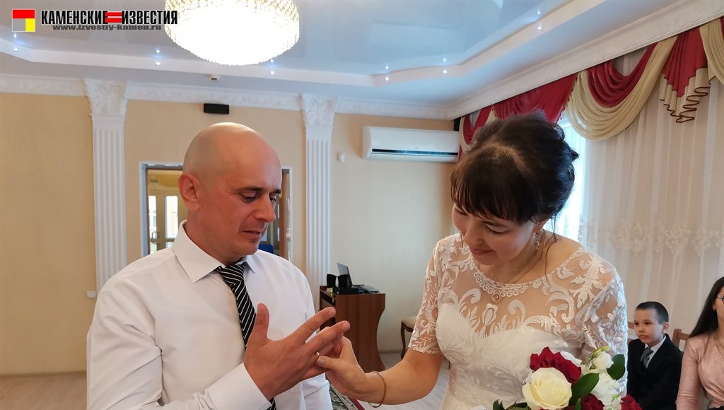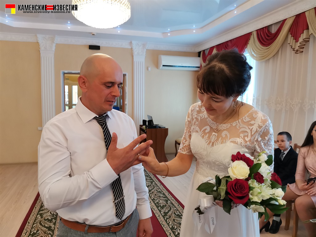 После непродолжительной встречи юбиляров и корреспондента в комнате молодоженов супругов Леоновых пригласили в зал бракосочетаний, где под бурные аплодисменты они произнесли свои заветные «Да» на вопрос регистратора – согласны ли они по-прежнему окружать вниманием и заботой любимого человека, защищать и беречь свою любовь. Поставив подписи в Книге юбиляров и обменявшись кольцами, Алексей пригласил Яну на свадебный танец. Также Леоновым было вручено памятное свидетельство о двадцатилетии совместной жизни, затем супруги принимали поздравления от родных и близких. Мероприятие закончилось небольшой фотосессией.