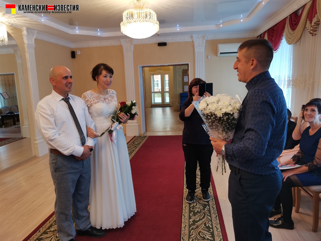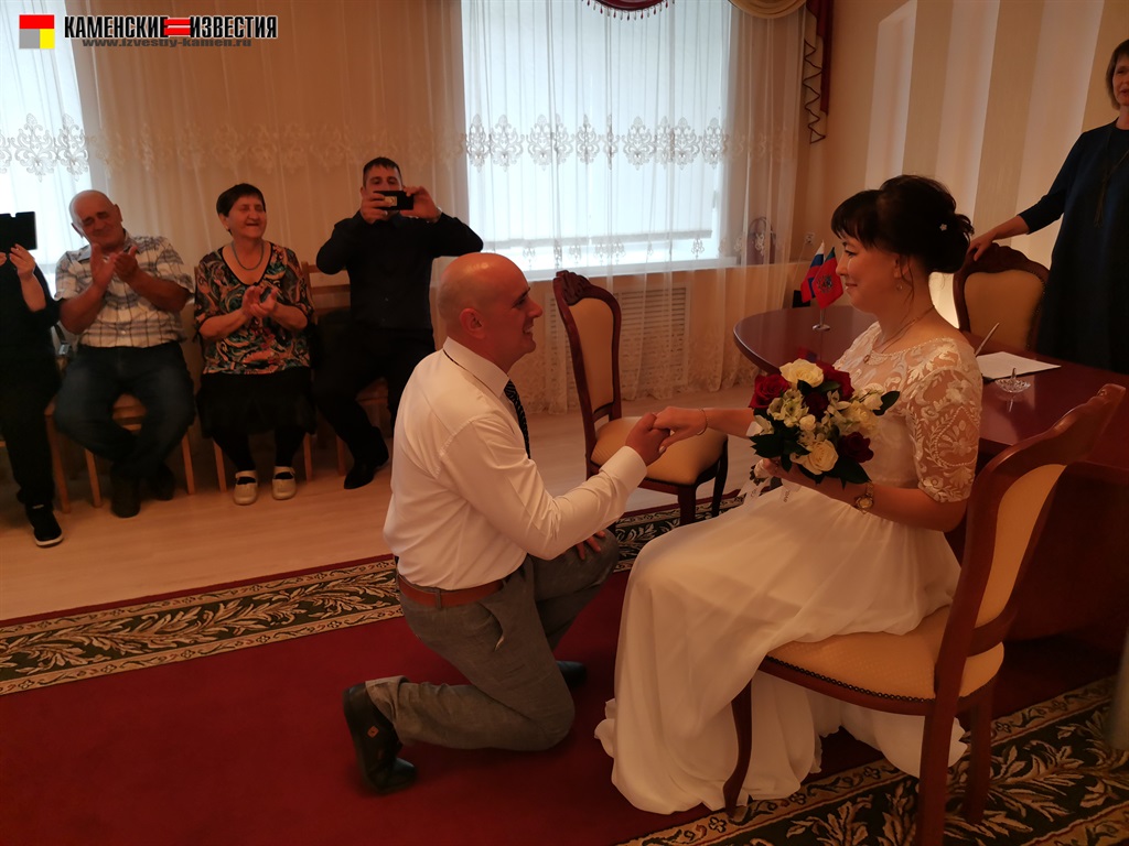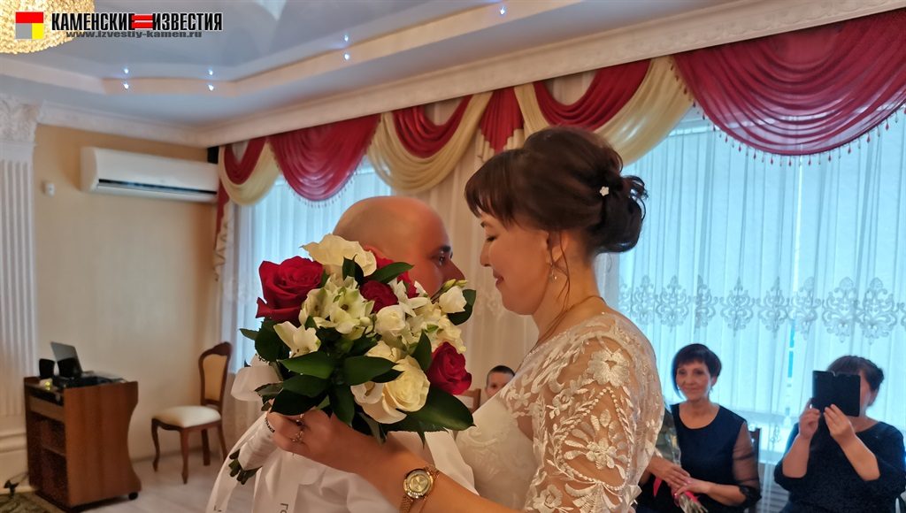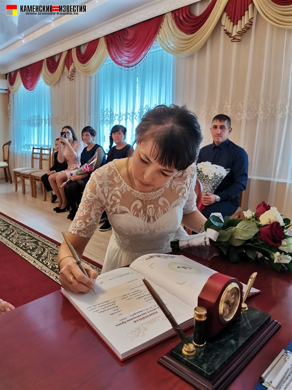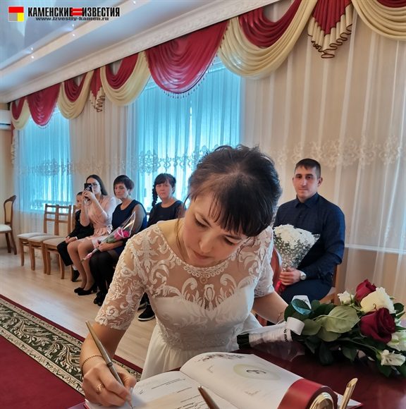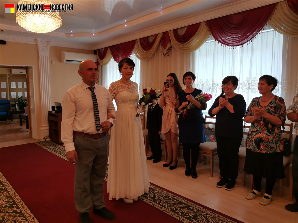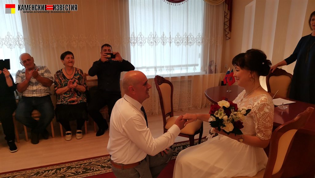 После непродолжительной встречи юбиляров и корреспондента в комнате молодоженов супругов Леоновых пригласили в зал бракосочетаний, где под бурные аплодисменты они произнесли свои заветные «Да» на вопрос регистратора – согласны ли они по-прежнему окружать вниманием и заботой любимого человека, защищать и беречь свою любовь. Поставив подписи в Книге юбиляров и обменявшись кольцами, Алексей пригласил Яну на свадебный танец. Также Леоновым было вручено памятное свидетельство о двадцатилетии совместной жизни, затем супруги принимали поздравления от родных и близких. Мероприятие закончилось небольшой фотосессией.