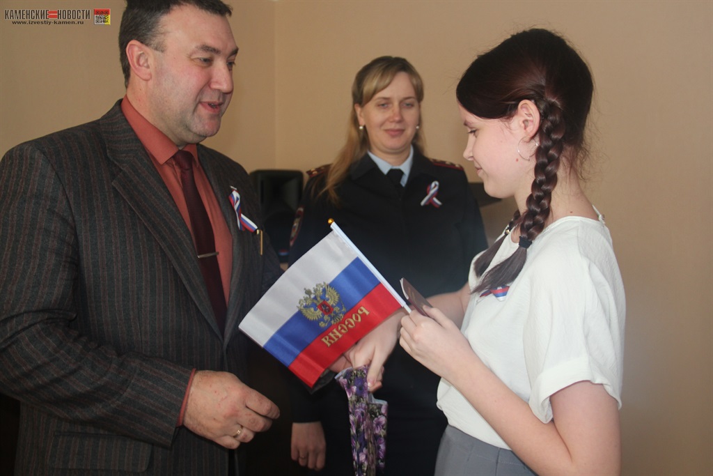 «Очень приятно вручать вам паспорта в такой обстановке, — обратился к ребятам Павел Глотов, замглавы Администрации Каменского района, — запомните, что паспорт наделяет вас не только правами, но и обязанностями перед обществом. Документ не теряйте, оберегайте. Желаю вам успехов в жизни и всегда быть патриотами своей страны».