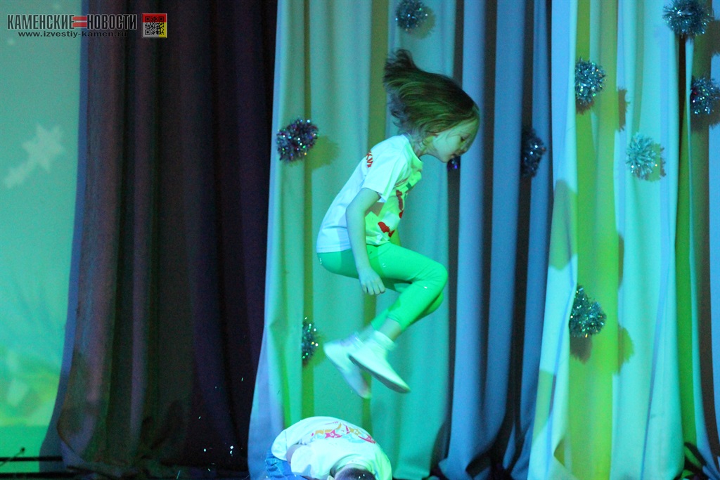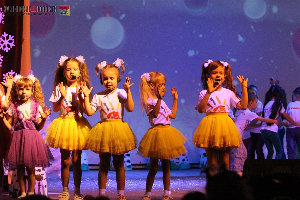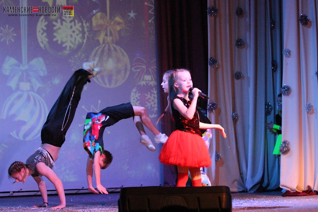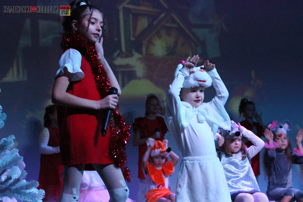 В новогоднем представлении приняли участие: ансамбль «Курносики» и «Карусель» и театральная студия «Воздух».