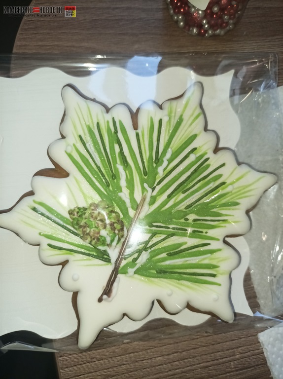 Анна и Ольга предложили принять участие в мастер-классе, я с радостью согласилась. Задание заключалось в том, что на пряник в виде фигуры елочки нужно было нанести разноцветную глазурь, создавая новогодний узор. Первым слоем густой глазури прошлись по краю пряника — это была основа рисунка. Залили эту основу вторым более жидким слоем — придали окрас всему изделию. И еще на влажную поверхность нанесли белую глазурь – как снег на ветках. Оставили на короткое время для полного застывания. Этот интересный творческий процесс был завершен дегустацией с чаепитием, что вдвойне приятно. Конечно, вкус и аромат передать сложно, но он точно не сравнится с магазинным изделием. Свой секретный ингредиент есть у каждого кондитера. Секрет наших мастериц в том, что эта выпечка оставляет приятное пряное послевкусие.