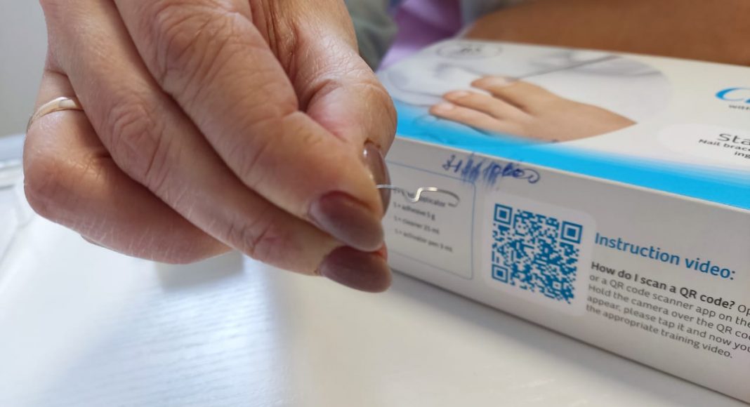 Есть и еще одно неудобство, которое может портить жизнь — когда ноготь врастает в кожу. И это можно решить установкой коррекционных систем. Устанавливаем специальную пластину, которая крепится специализированным клеем. И при ходьбе ноготь начинает расти в правильном направлении. В некоторых случаях ставится скоба. А иногда достаточно лишь правильно постричь ногти и сделать тампонады. Главное, что выход есть и все можно исправить».