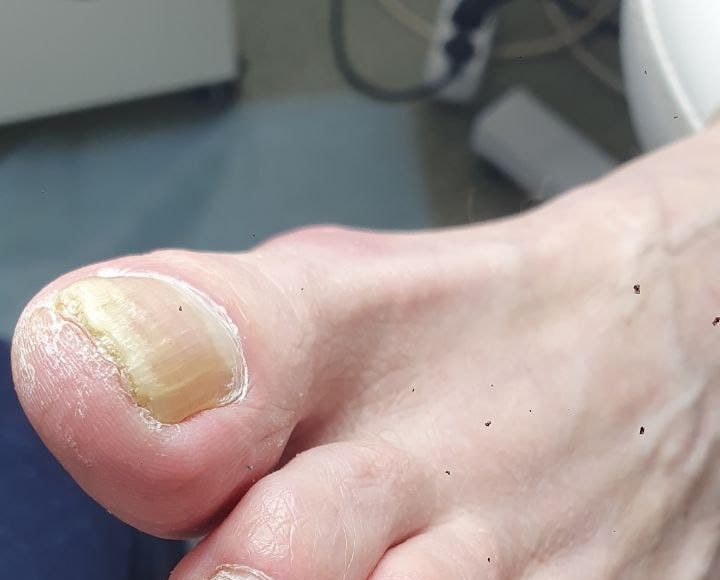 Еще одна проблема, с которой ко мне можно обратиться — это утолщение ногтя. При этом ноготь меняет свою окраску, болит. Да, многие не в курсе, но ногти имеют свойство болеть. При этом люди зачастую даже не могут их состричь, ходить очень неудобно.