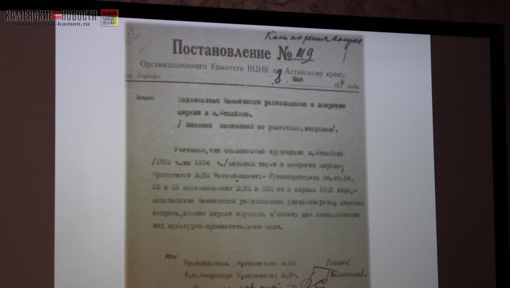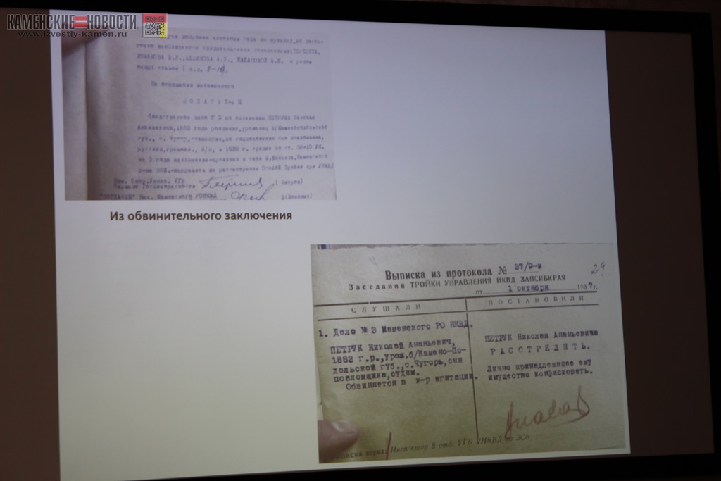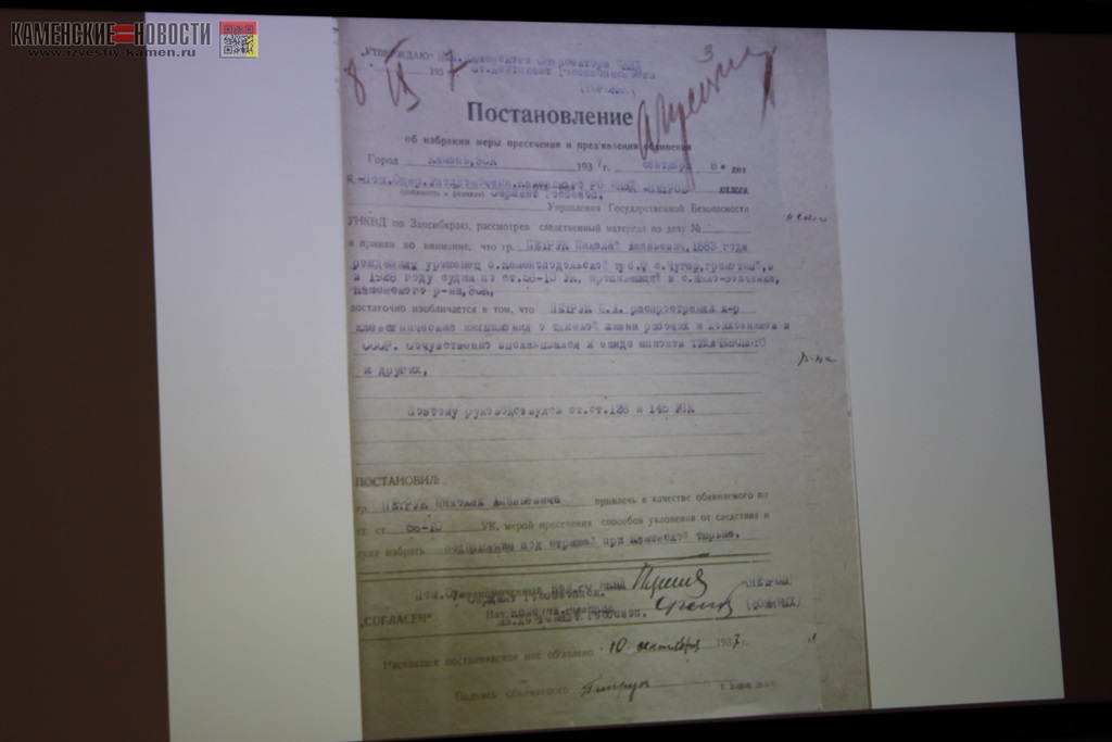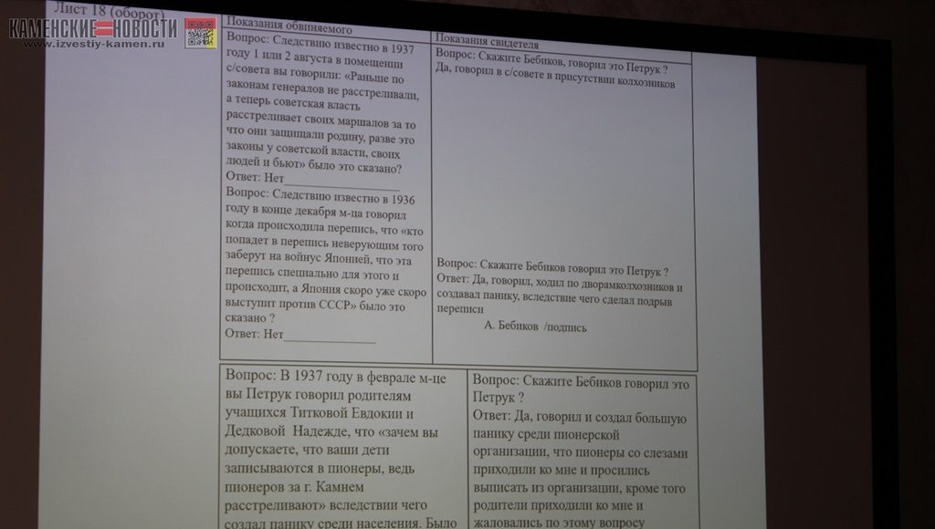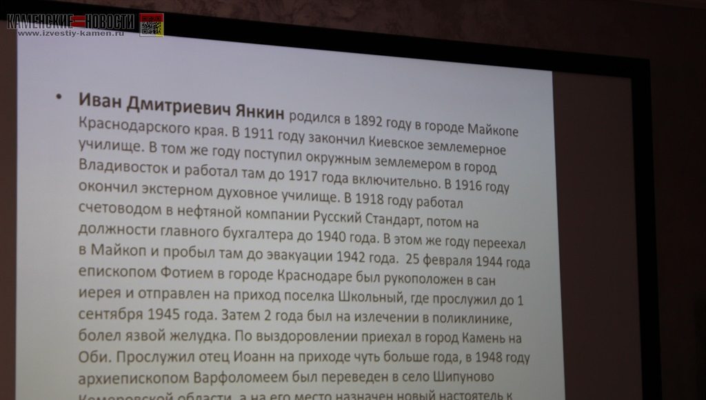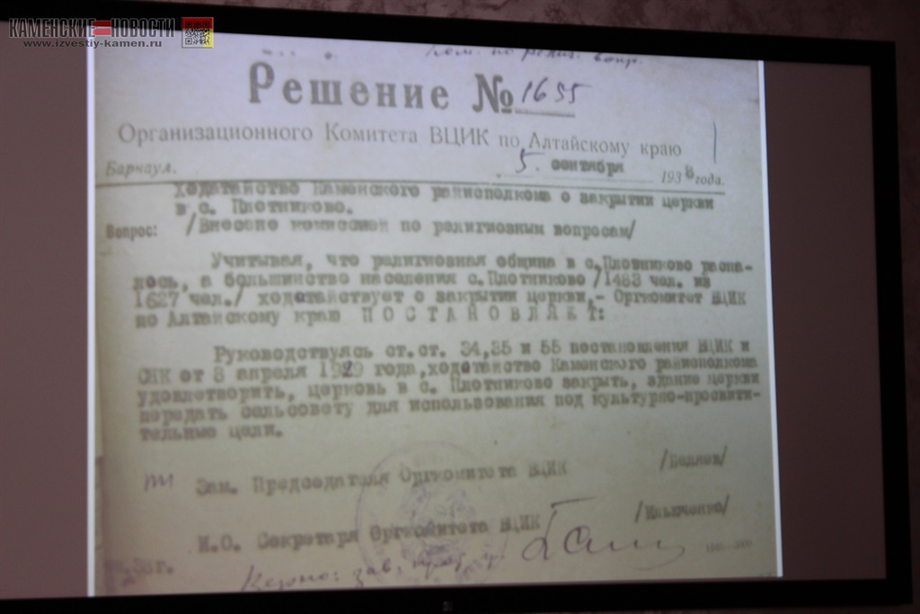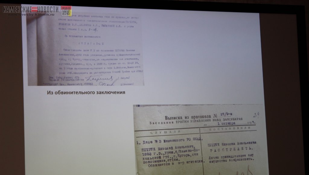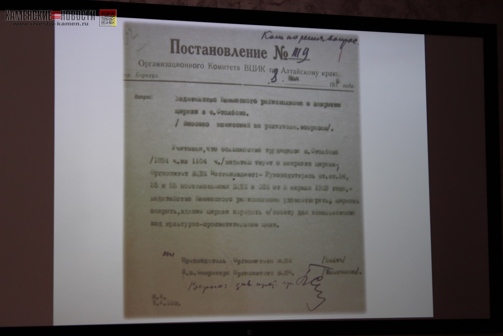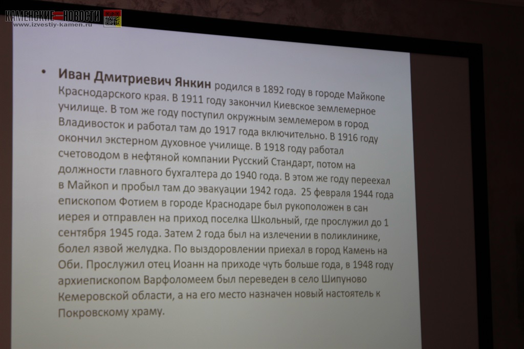 События тех лет освещены в книге иерея Ярослава Гузеева, о которой и шла речь на этом мероприятии. Так же зрителям показали отрывки документального фильма, снятого по мотивам этой книги. Где познакомили зрителя с некоторыми фактами, взятыми из архивных документов и словами свидетелей о деяниях, гонениях и расстрелах, происходящих  в нашем городе и Каменском районе.