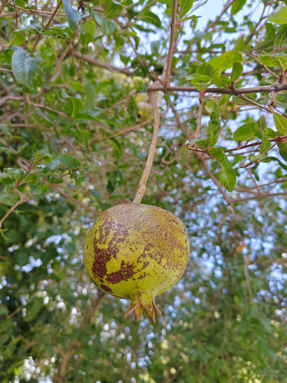 Не скажу, что мы очень пожалели по итогам такого длительного променада. С шоссе, возвышающегося над береговой линией, открываются удивительные виды (улицей ниже они, правда, ещё удивительнее). В какой-то момент мы сели передохнуть в тени старинной каменной часовни времён австрийского политического и культурного влияния. Собственно, тень создавало огромное гранатовое дерево. Жаль, гранаты ещё не поспели…